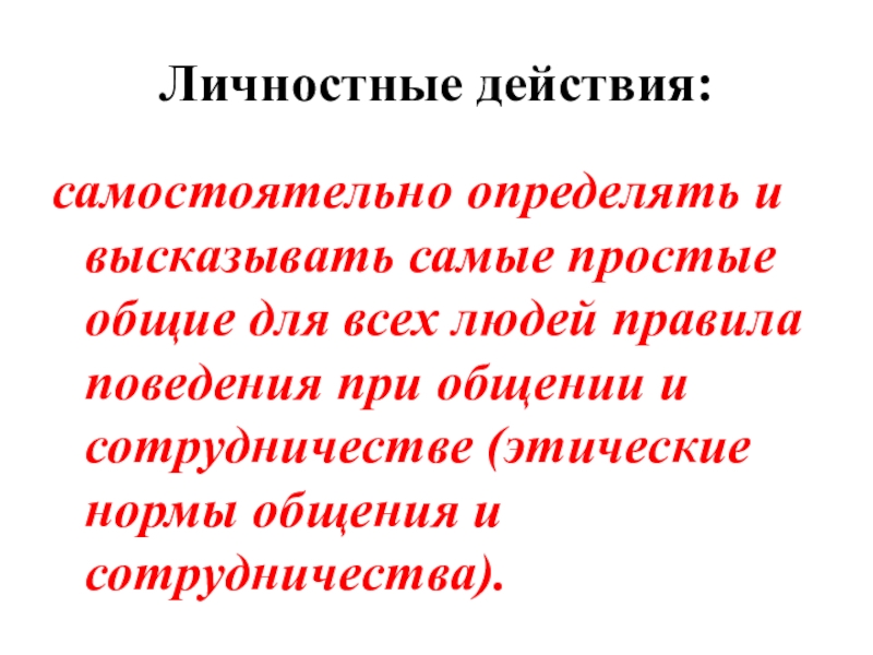 самостоятельно определять и высказывать самые простые общие для всех людей