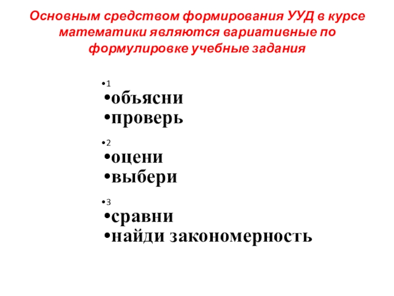 Основным средством формирования УУД в курсе математики являются вариативные по формулировке