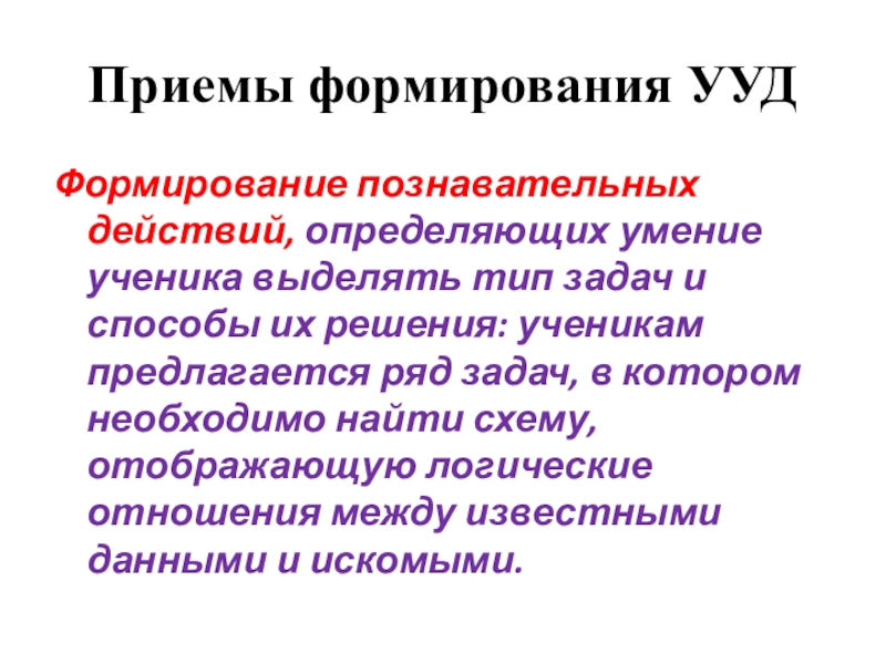 Формирование познавательных действий, определяющих умение ученика выделять тип