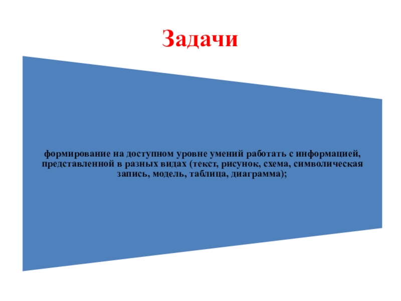 формирование на доступном уровне умений работать с информацией, представленной в разных