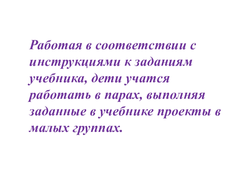 Слайд 21Работая в соответствии с инструкциями к заданиям учебника, дети учатся работать