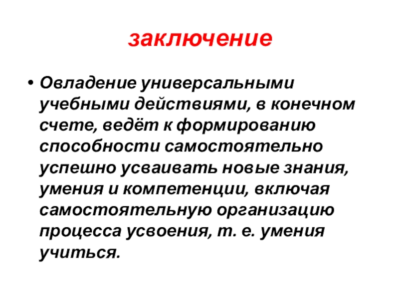 Овладение универсальными учебными действиями, в конечном счете, ведёт к формированию способности