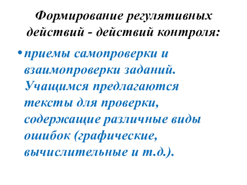 Слайд 22Формирование регулятивных действий - действий контроля: