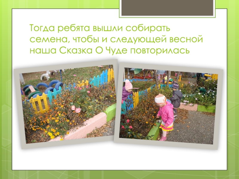 Слайд 15Тогда ребята вышли собирать семена, чтобы и следующей весной наша Сказка