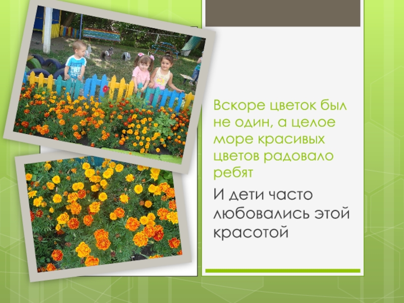 Слайд 13Вскоре цветок был не один, а целое море красивых цветов радовало