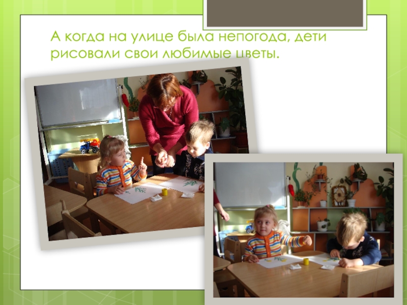 Слайд 12А когда на улице была непогода, дети рисовали свои любимые цветы.