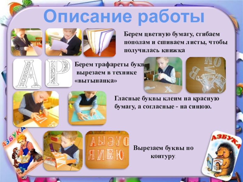 Гласные буквы клеим на красную бумагу, а согласные - на синюю.