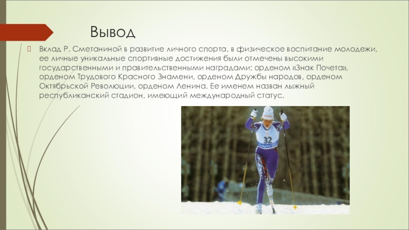 Вклад Р. Сметаниной в развитие личного спорта, в физическое воспитание