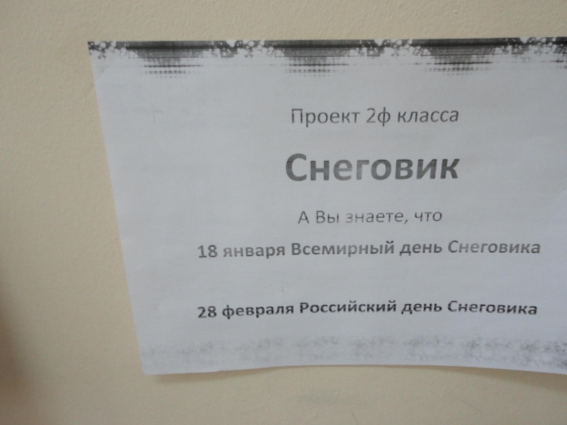 Презентация, доклад к проекту Снеговик,посвященный Российскому дню Снеговика 28 февраля