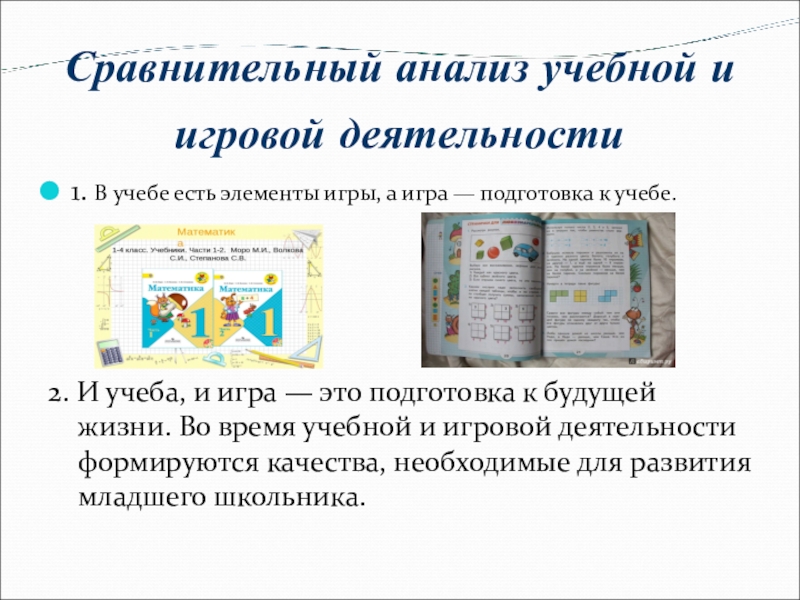 2. И учеба, и игра — это подготовка к будущей жизни. Во время учебной и игровой деятельности формируются качества, необходимые для развития младшего школьника.