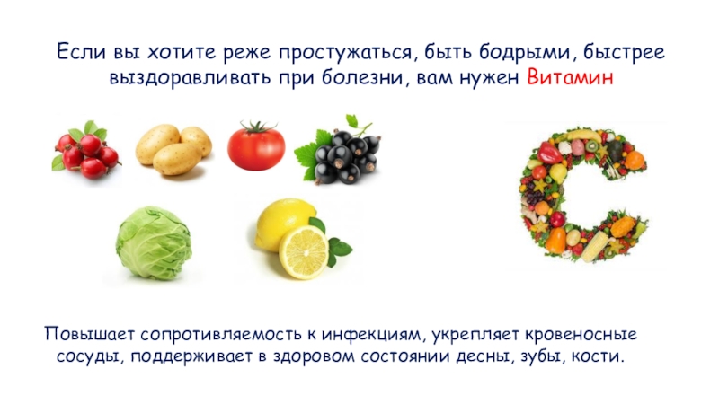 Повышает сопротивляемость к инфекциям, укрепляет кровеносные сосуды, поддерживает в здоровом состоянии десны, зубы, кости.