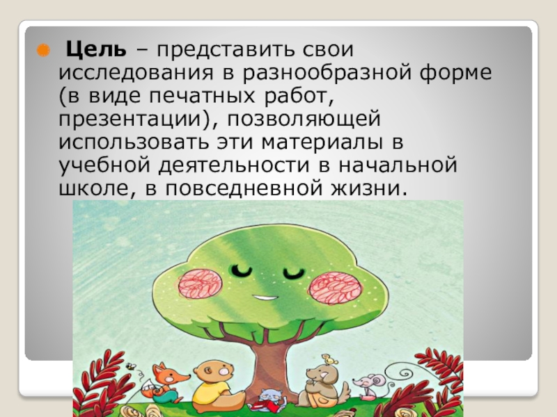 Слайд 3 Цель – представить свои исследования в разнообразной форме (в виде