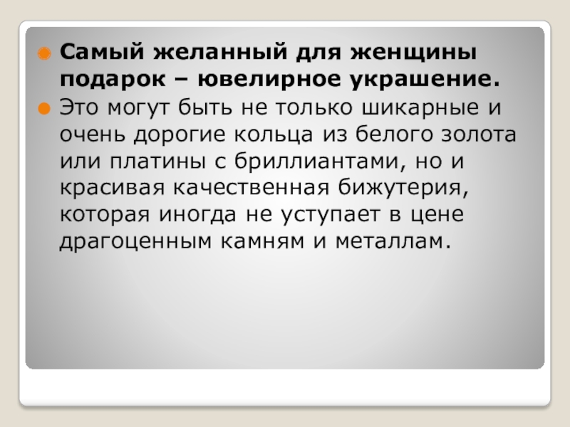 Слайд 18Самый желанный для женщины подарок – ювелирное украшение.