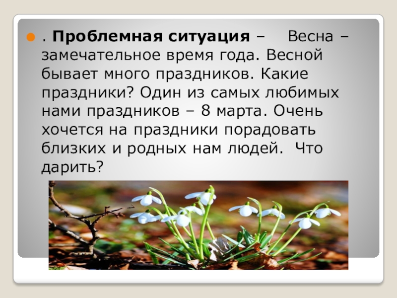 Слайд 2. Проблемная ситуация – Весна – замечательное время года. Весной