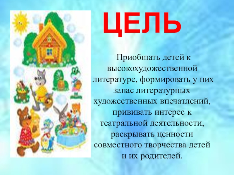 у них запас литературных художественных впечатлений, прививать интерес к театральной деятельности, раскрывать ценности совместного творчества детей и их родителей.