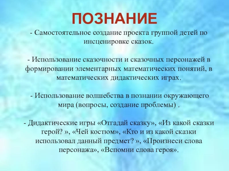 - Использование волшебства в познании окружающего мира (вопросы, создание проблемы) .