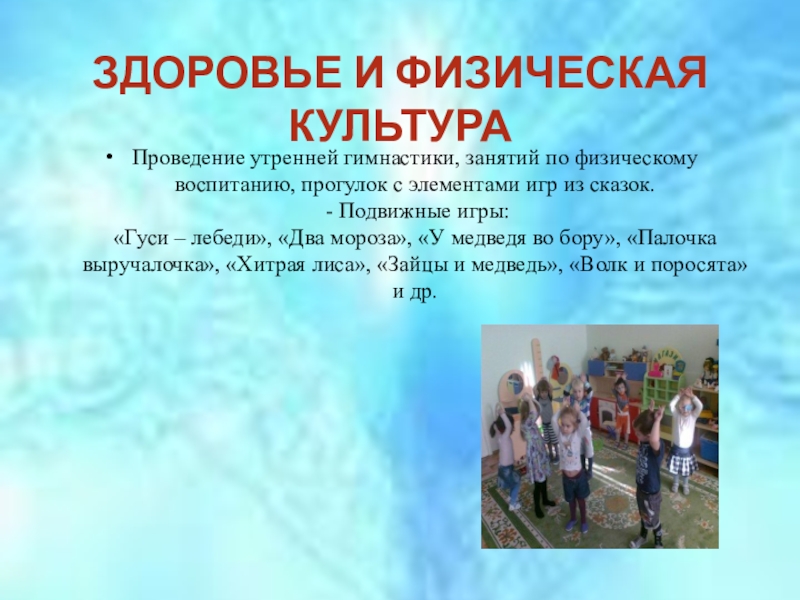 Проведение утренней гимнастики, занятий по физическому воспитанию,