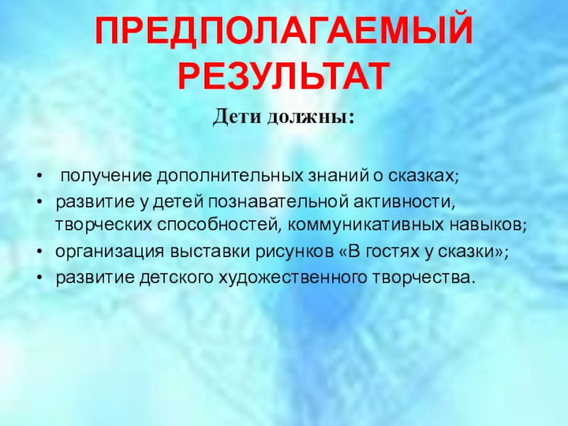 Слайд 6ПРЕДПОЛАГАЕМЫЙ РЕЗУЛЬТАТ
