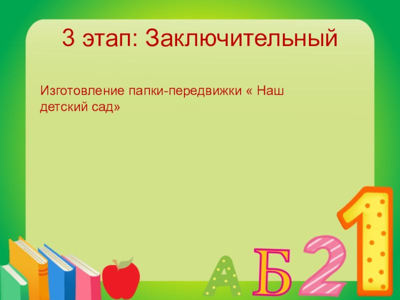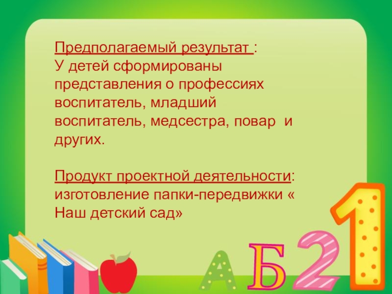 Продукт проектной деятельности: изготовление папки-передвижки « Наш детский сад»
