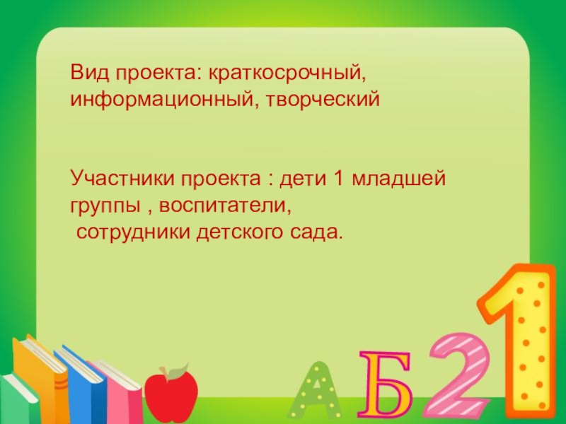 Слайд 2Вид проекта: краткосрочный, информационный, творческий