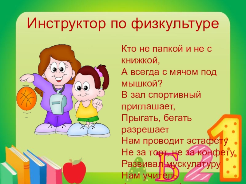 Беседа «Профессия –инструктор по физкультуре» Цель: ознакомление детей с профессией и деятельностью инструктора по физической культуре в доу.