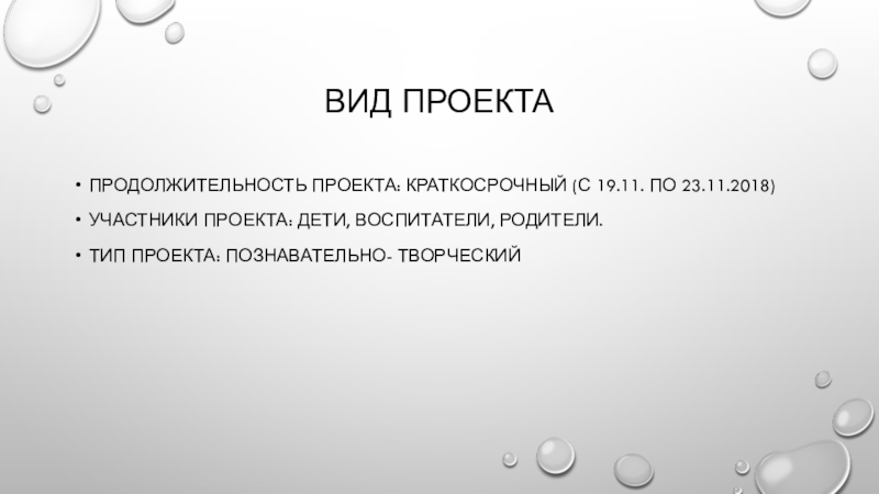 Продолжительность проекта: краткосрочный (с 19.11. по 23.11.2018)