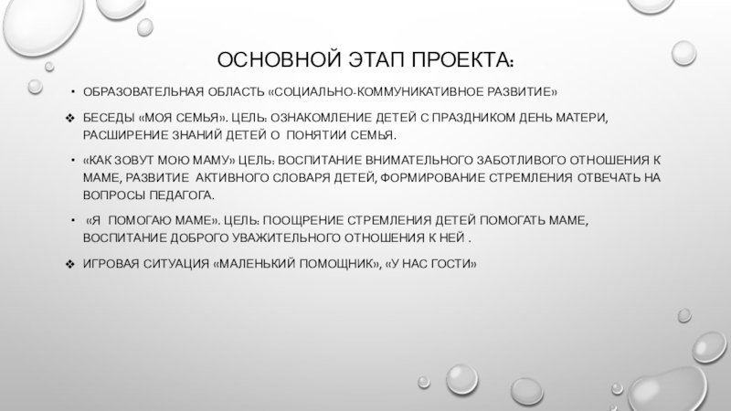Наша работа направлена на воспитание в ребенке любви, уважение, чувства сопереживания и взаимопомощи близкому человеку – маме.