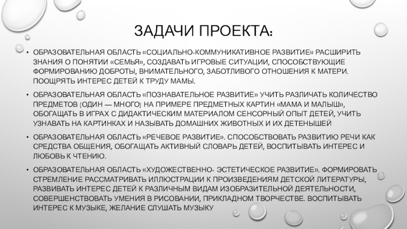Образовательная область «Социально-коммуникативное развитие» Расширить знания о понятии «семья», создавать
