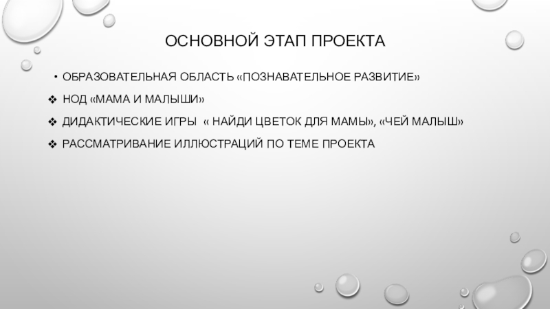 «Как зовут мою маму» Цель: воспитание внимательного заботливого отношения к маме, развитие активного словаря детей, формирование стремления отвечать на вопросы педагога.