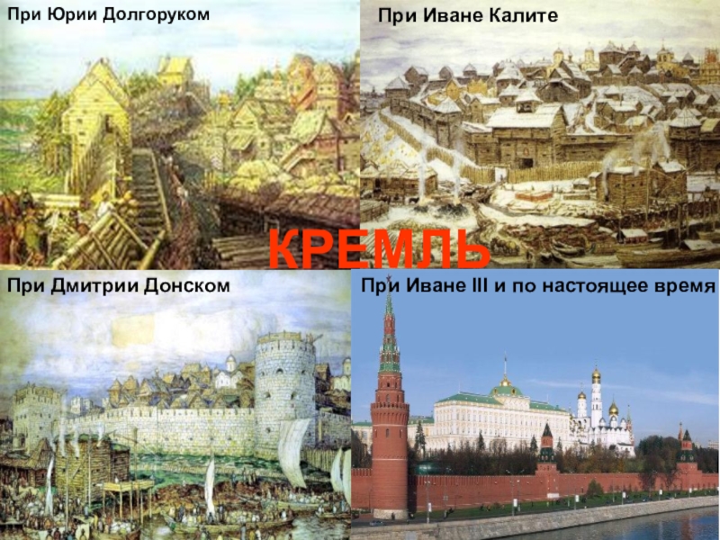 КРЕМЛЬПри Юрии ДолгорукомПри Иване КалитеПри Дмитрии ДонскомПри Иване III и по настоящее время