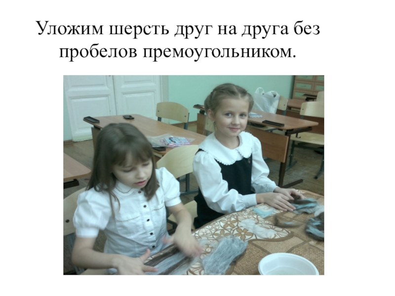 Слайд 18Уложим шерсть друг на друга без пробелов премоугольником.