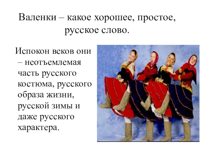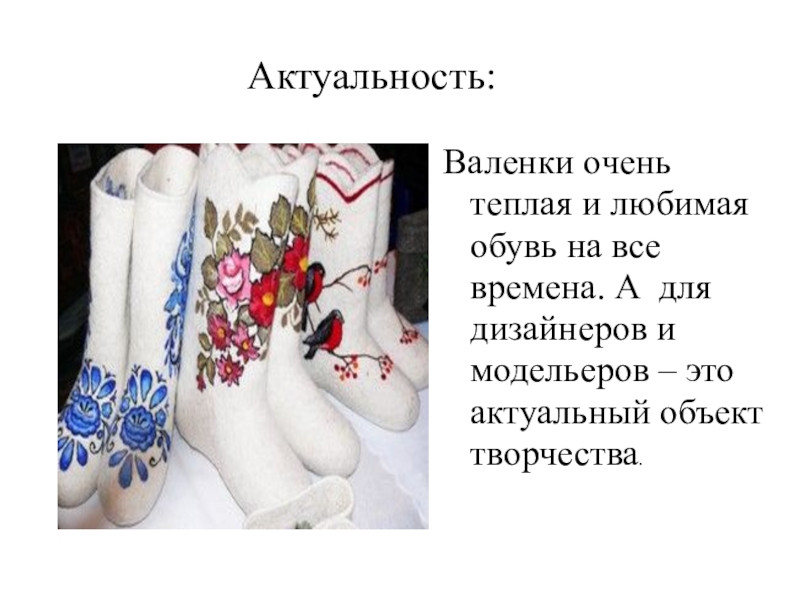 Слайд 1Тема: Валенки, любимая обувь всей России.