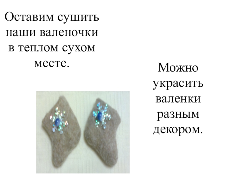Слайд 24Оставим сушить наши валеночки в теплом сухом месте.