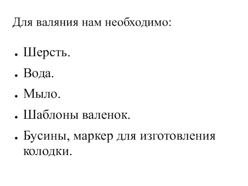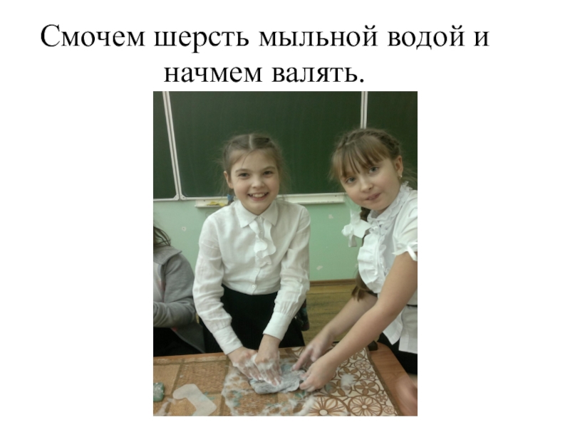 Слайд 19Смочем шерсть мыльной водой и начмем валять.
