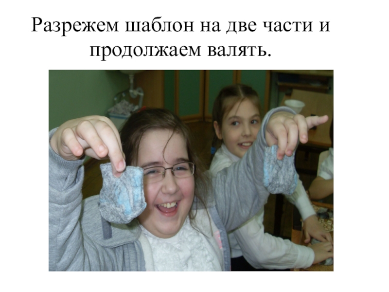 Слайд 22Разрежем шаблон на две части и продолжаем валять.
