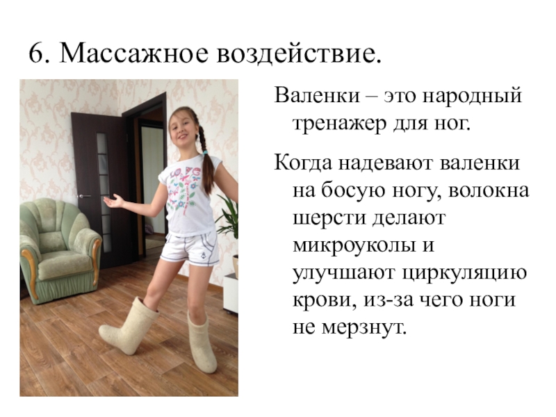 Слайд 4 Удобная и целебная ли обувь валенки. Страшны ли в валенках