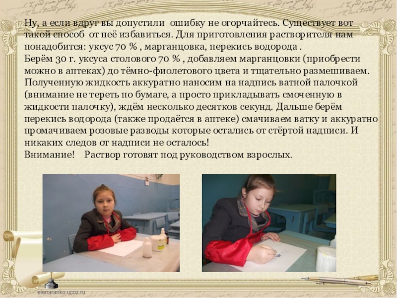 а если вы нечаянно допустили ошибку , её можно незаметно исправить при помощи специального раствора.