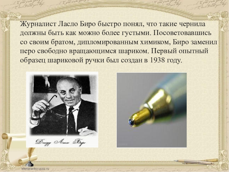 Слайд 11Журналист Ласло Биро быстро понял, что такие чернила должны быть как