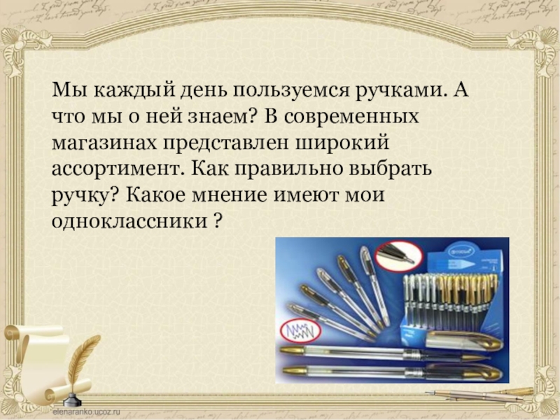 Слайд 2Мы каждый день пользуемся ручками. А что мы о ней знаем?