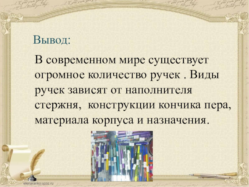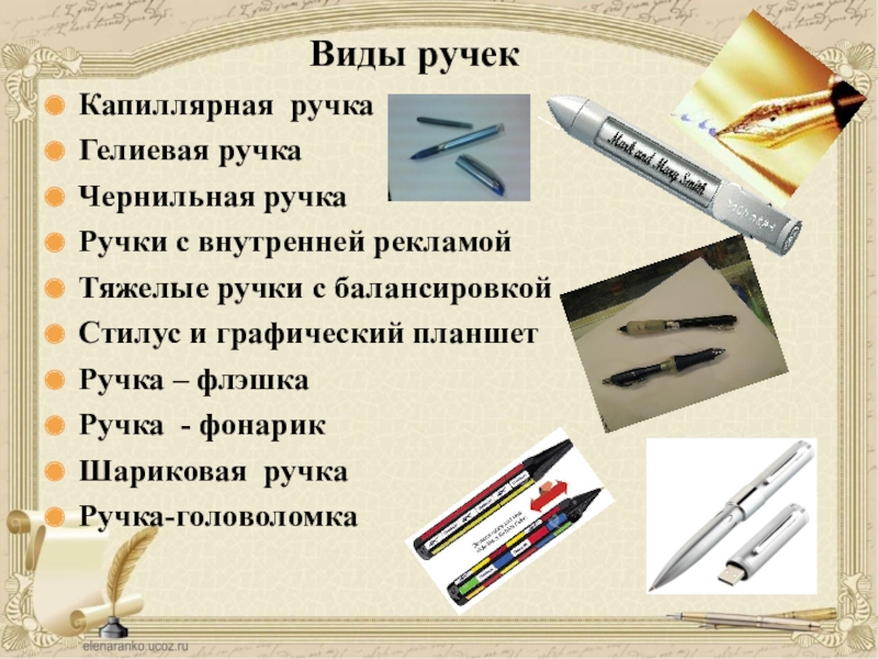 В современном мире существует огромное количество ручек . Виды ручек зависят