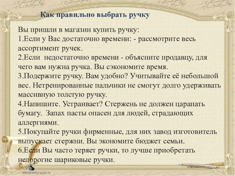 2.Если недостаточно времени - объясните продавцу, для чего вам нужна ручка. Вы сэкономите время.
