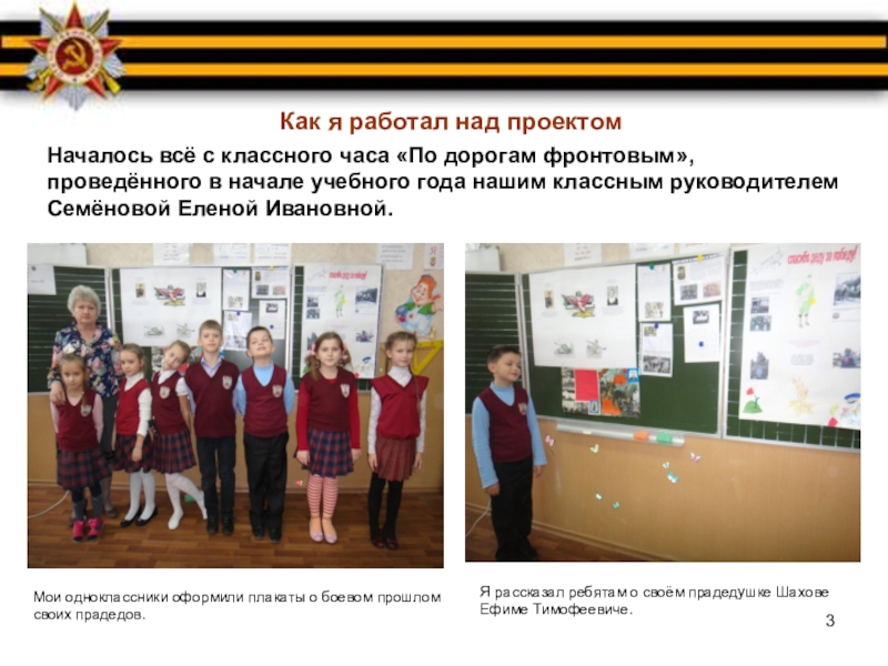 Началось всё с классного часа «По дорогам фронтовым», проведённого в начале учебного года нашим классным руководителем Семёновой Еленой Ивановной.