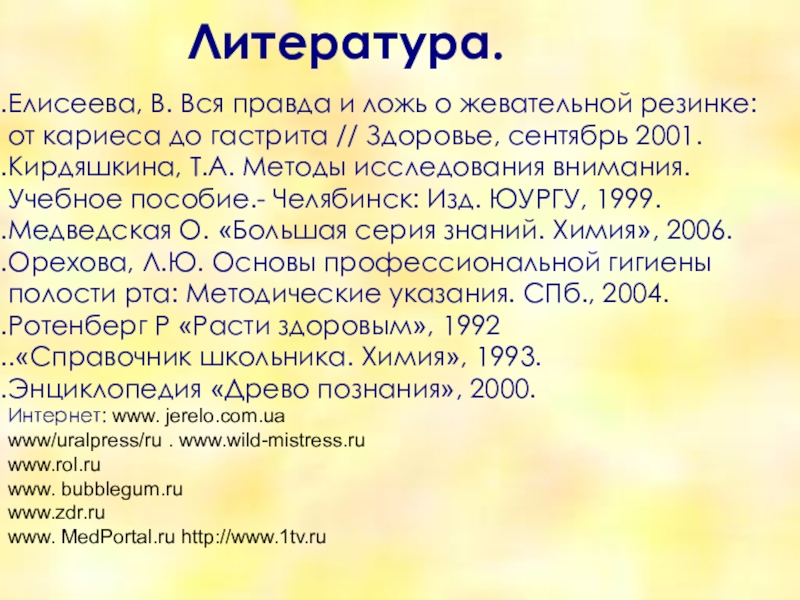 Проанализировать литературу о влиянии жевательной резинки на здоровье человека.
