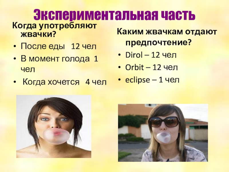 2) Второй раз – учащиеся выполняли работу с жевательной резинкой