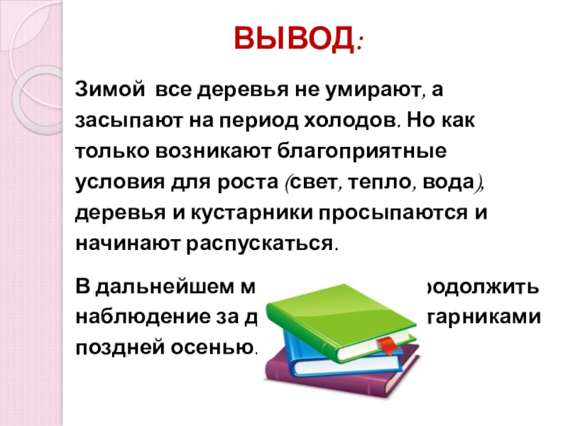 В дальнейшем мы планируем продолжить наблюдение за деревьями и кустарниками поздней осенью.