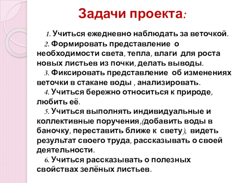 6. Учиться рассказывать о полезных свойствах зелёных листьев.