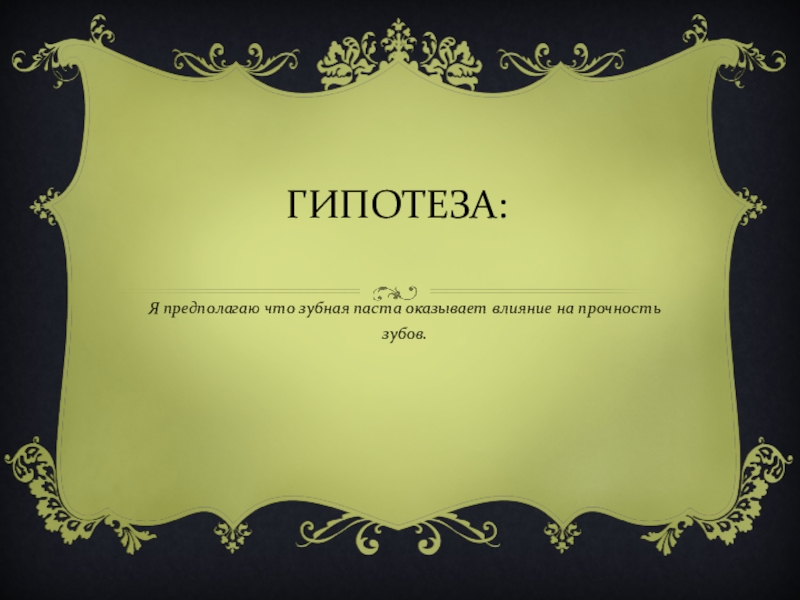 ГИПОТЕЗА:Я предполагаю что зубная паста оказывает влияние на прочность зубов.