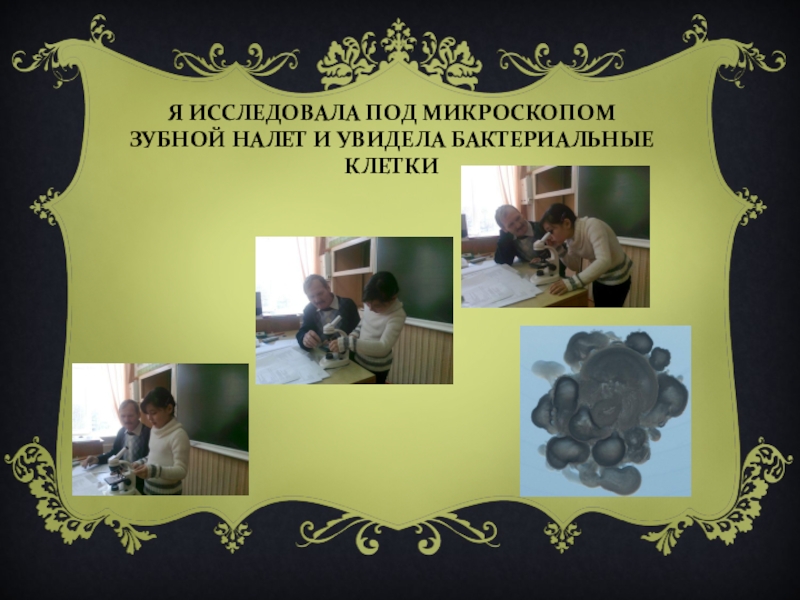 Слайд 23Я ИССЛЕДОВАЛА ПОД МИКРОСКОПОМ ЗУБНОЙ НАЛЕТ И УВИДЕЛА БАКТЕРИАЛЬНЫЕ КЛЕТКИ