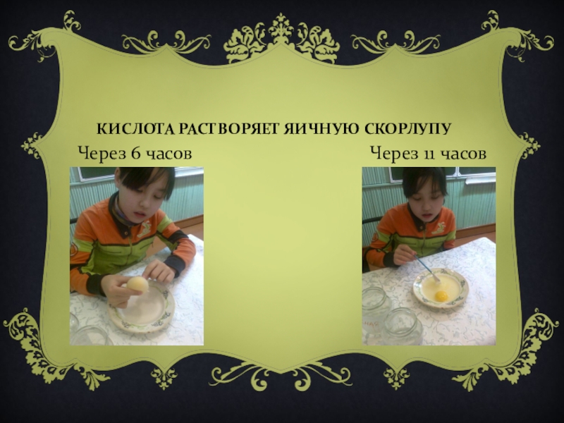 Слайд 20КИСЛОТА РАСТВОРЯЕТ ЯИЧНУЮ СКОРЛУПУ