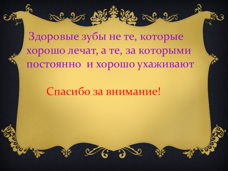 Слайд 26 Здоровые зубы не те, которые хорошо лечат, а те, за